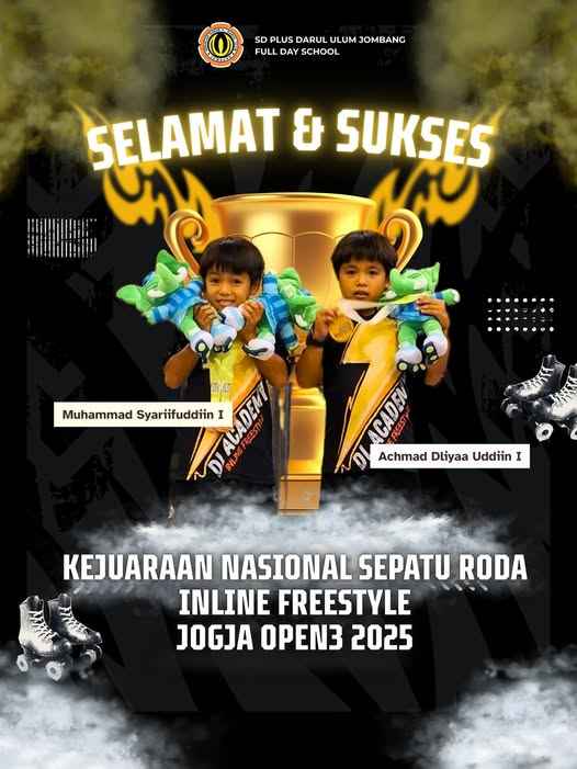 Jombang, 13 Oktober 2025 – Kabar membanggakan datang dari siswa SD Plus Darul Ulum Jombang. Dua siswa kembar, Muhammad Syariifuddin dan Achmad Dliyaa Uddiin, berhasil menorehkan prestasi gemilang dalam ajang Kejuaraan Nasional Sepatu Roda Inline Freestyle Jogja Open 3 2025.